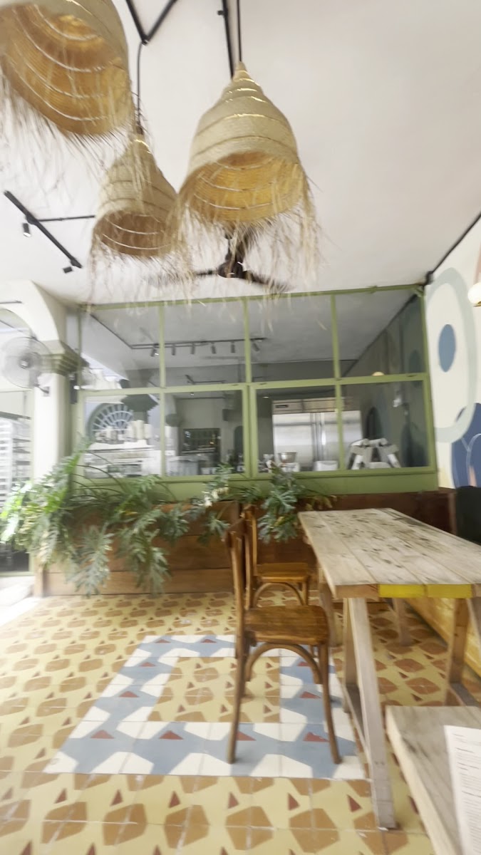 Un lindo lugar con bastante vegetación , tiene Terrazas y área con clima . Calidez del personal y buena atención, los alimentos deli deli , y una gran variedad de pan que vale la pena pecar !!!